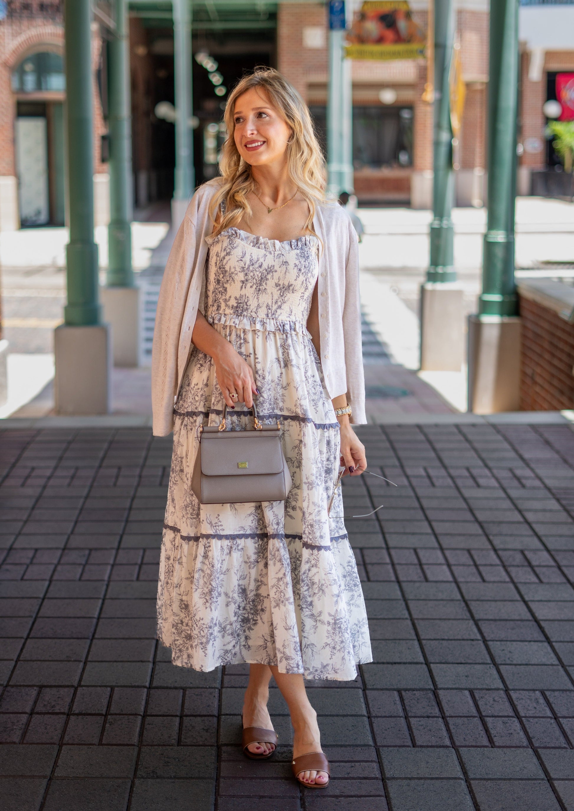 The Granada Dress is a lace trim floral printed sleeveless strap dress with flattering fit and flare silhouette, this dress is perfect for a day out. Smocked fitted bodice with ruffle trim, lace details on tiered seams, includes pockets, and fully lined