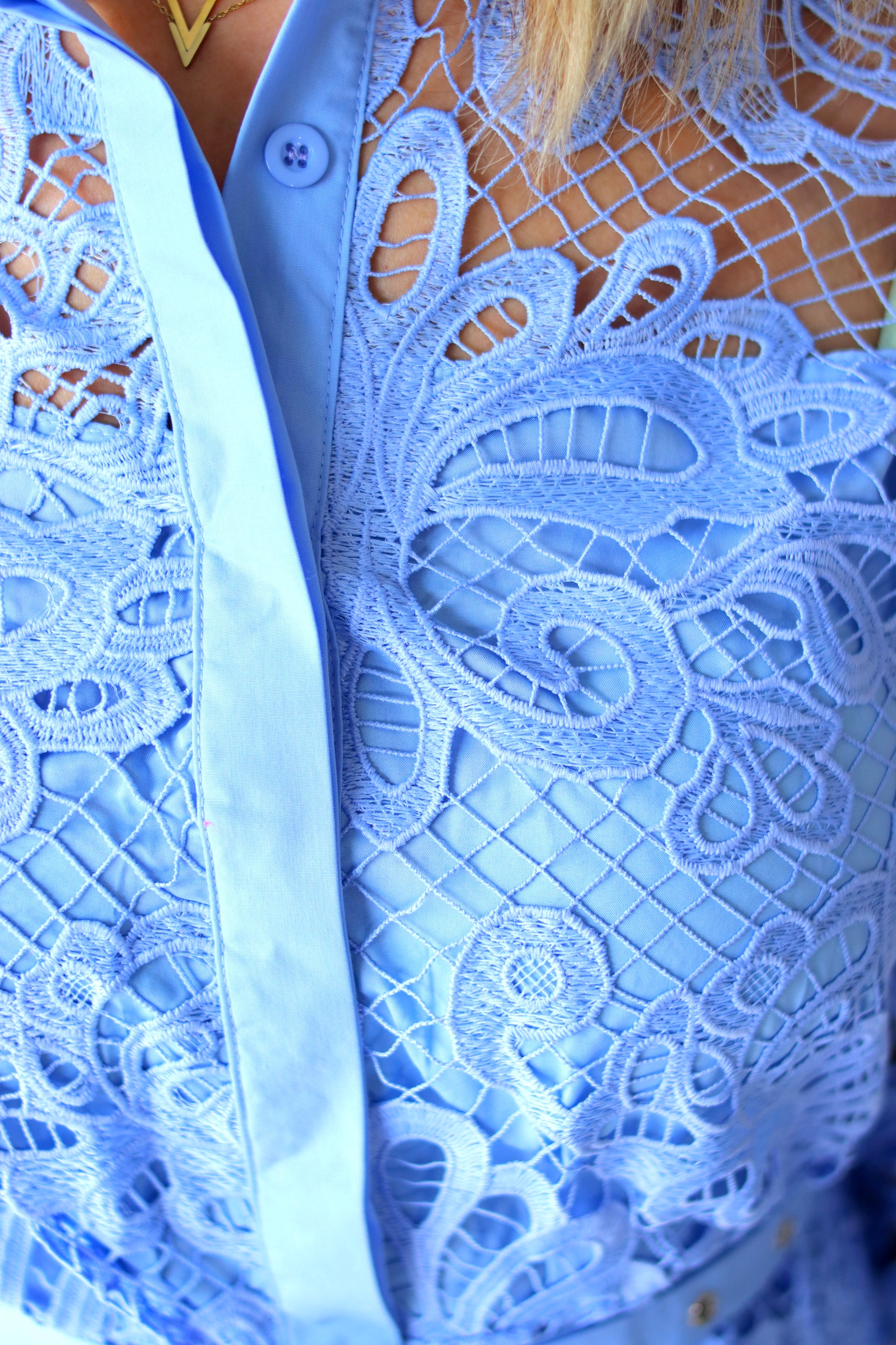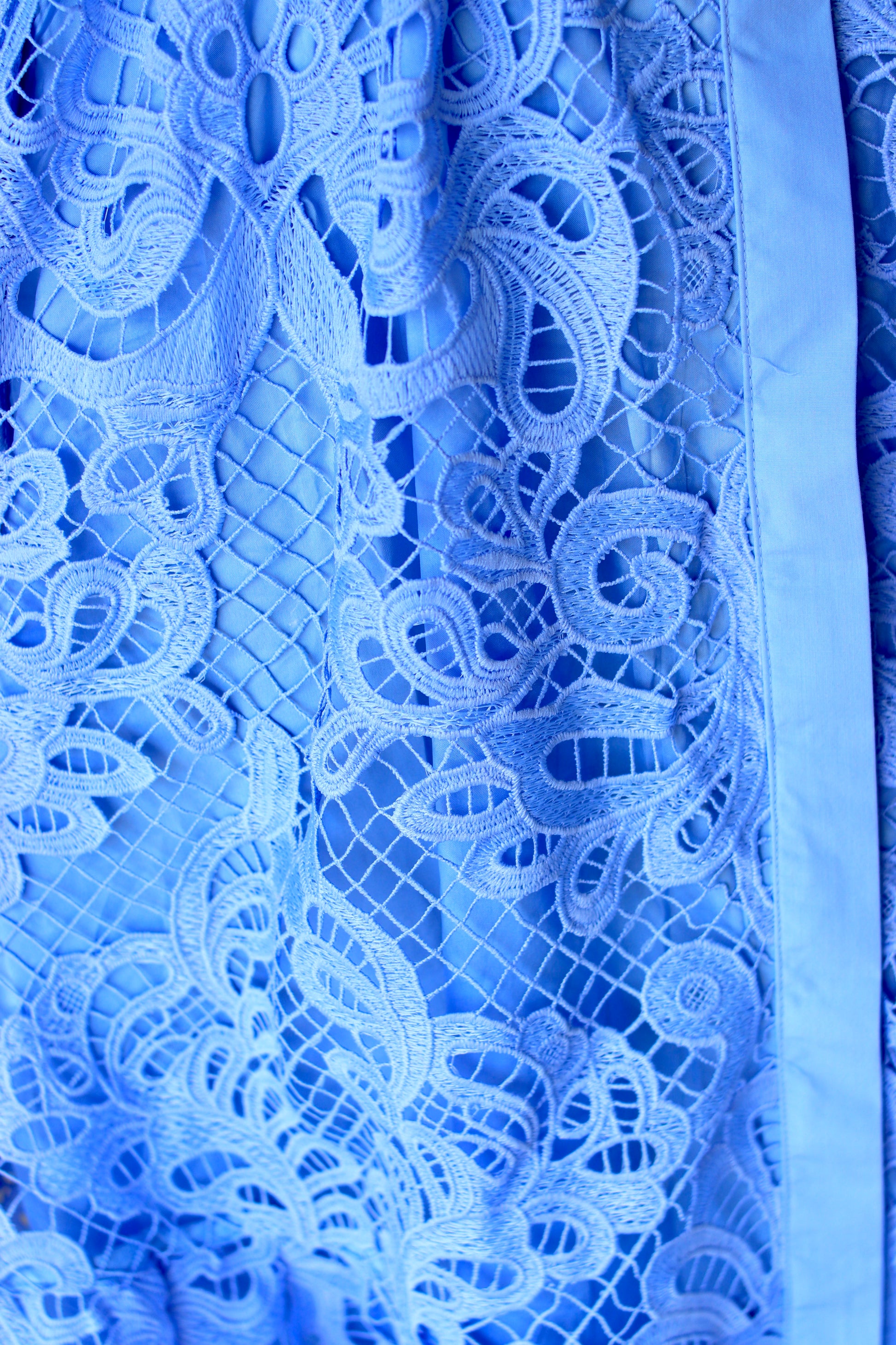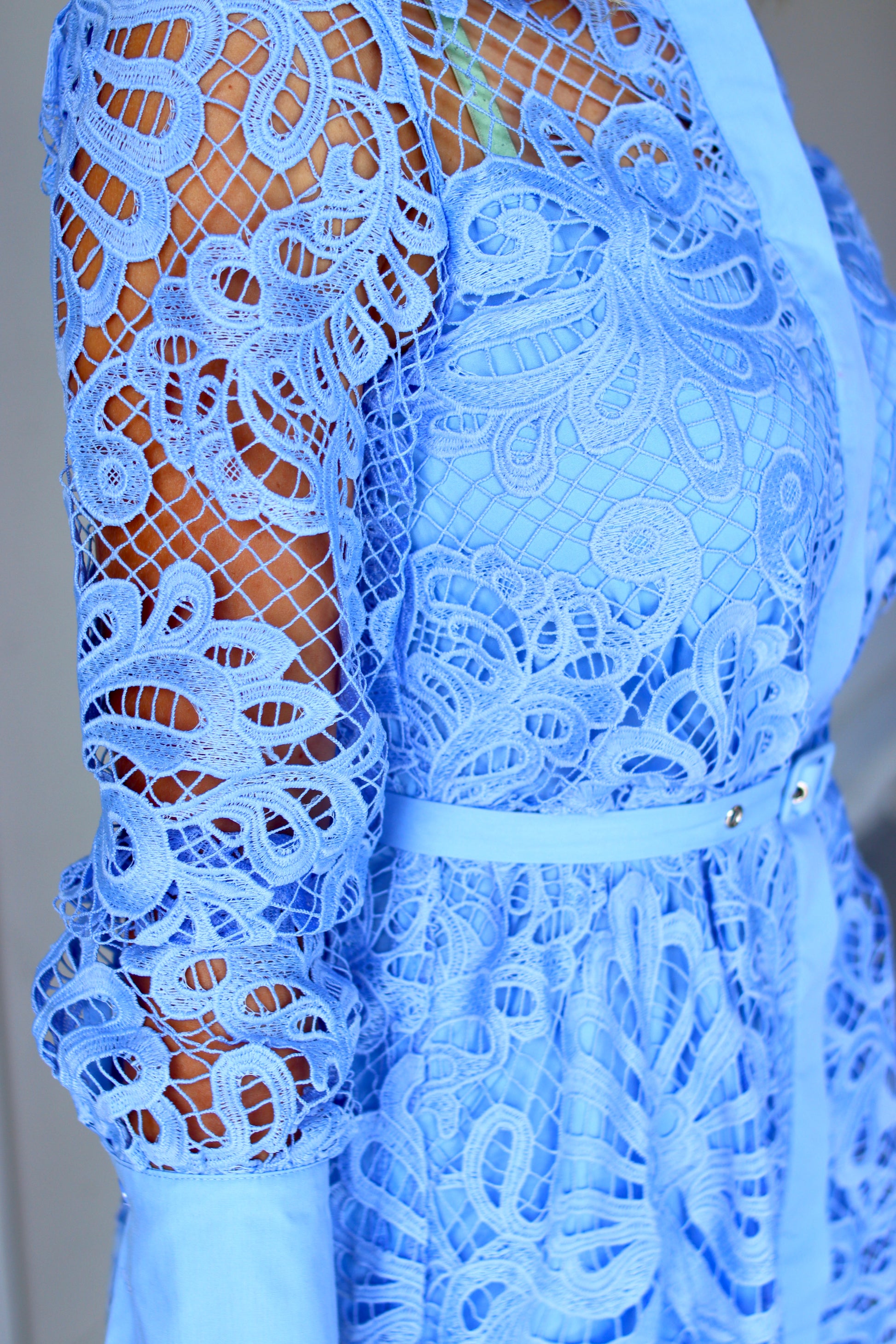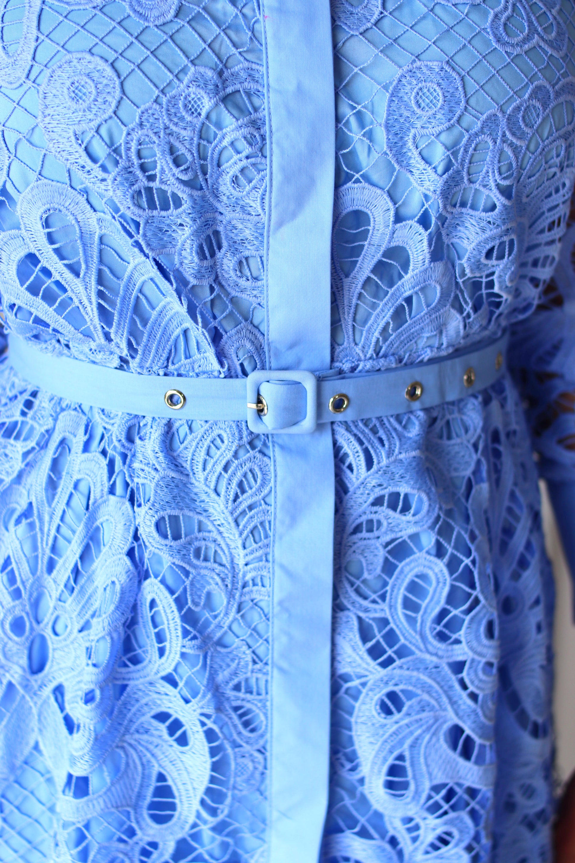 This belted lace maxi dress exudes a sense of femininity with its elegant long sleeves and intricate lace design. A detailed embroidered pattern and a polo collar with front buttons add a touch of sophistication to this piece. Complete the look with the included buckle belt.