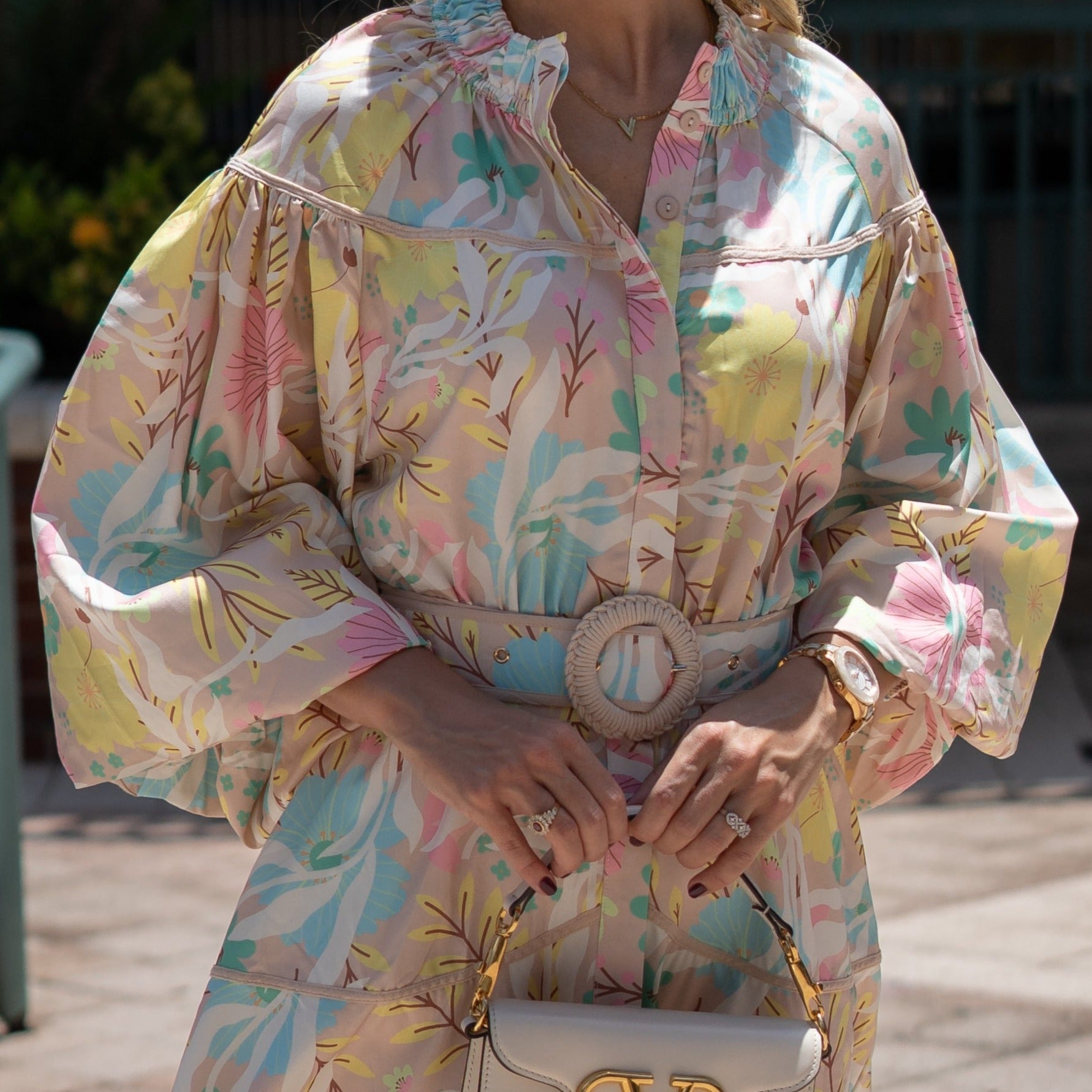Embrace your strength and sophistication in the Berlin Dress featuring a wide collar neckline and flowy puffy long sleeves!