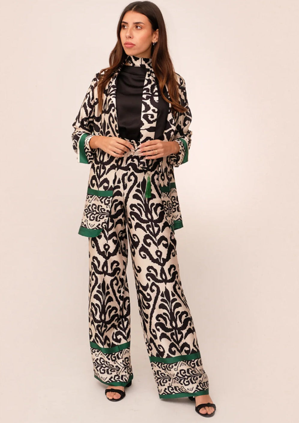 MYLYN- Green & White Satin Set