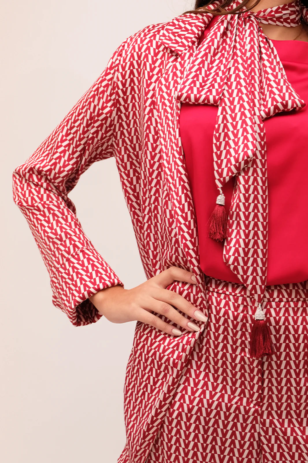 MYLYN- Red & White Satin Set